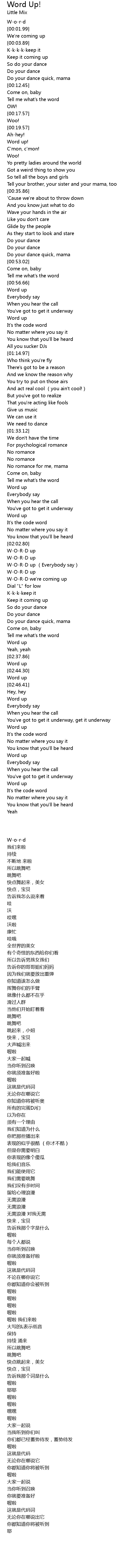 | [02:09.82] | W-O-R-D up (Everybody say) |