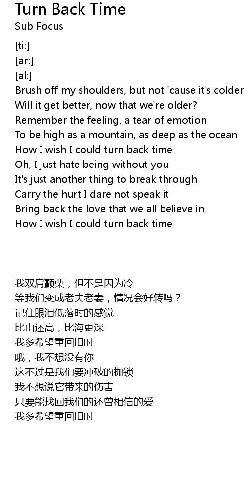 How I wish I could turn back time |