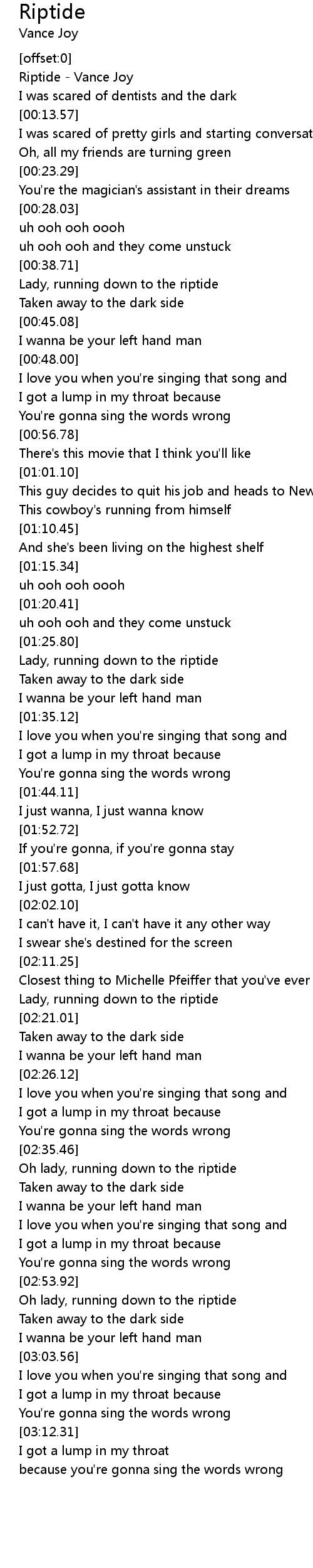 Riptide - Vance Joy |