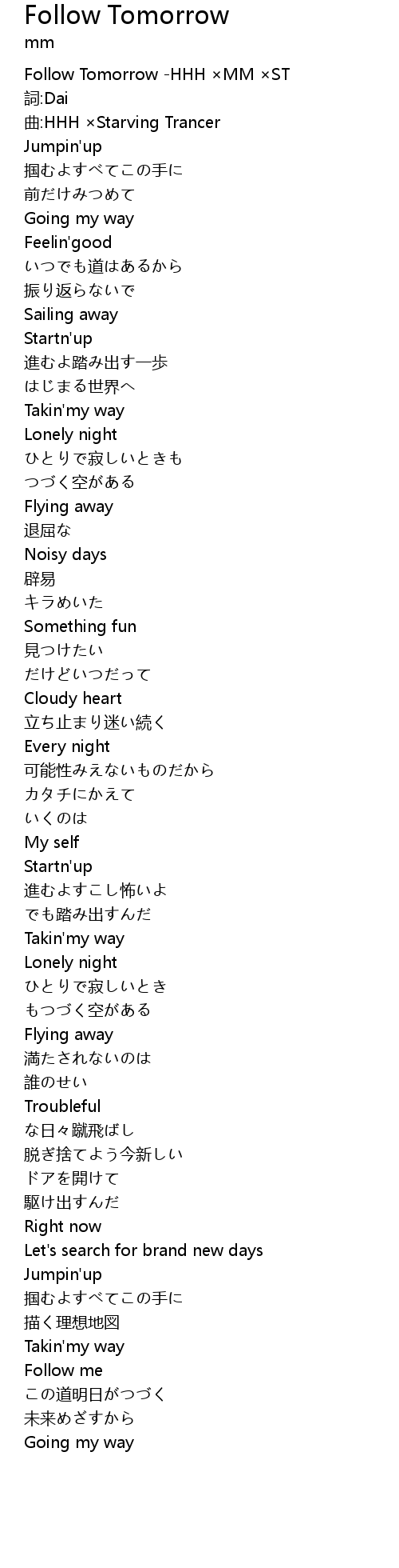 | [00:00.180] | Follow Tomorrow -HHH ×MM ×ST |
