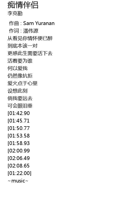 | [00:00.00] | 作曲 : Sam Yuranan |