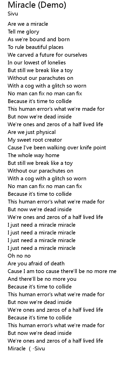 | [00:58.994] | We're ones and zeros of a half lived life |