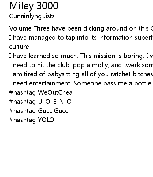 | Volume Three have been dicking around on this God-forsaken planet | |