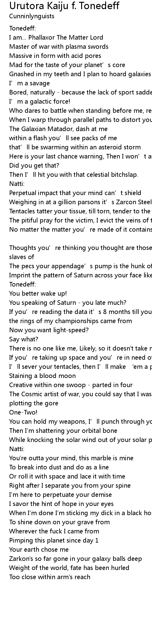| Zarkon's so far gone in your galaxy balls deep | |