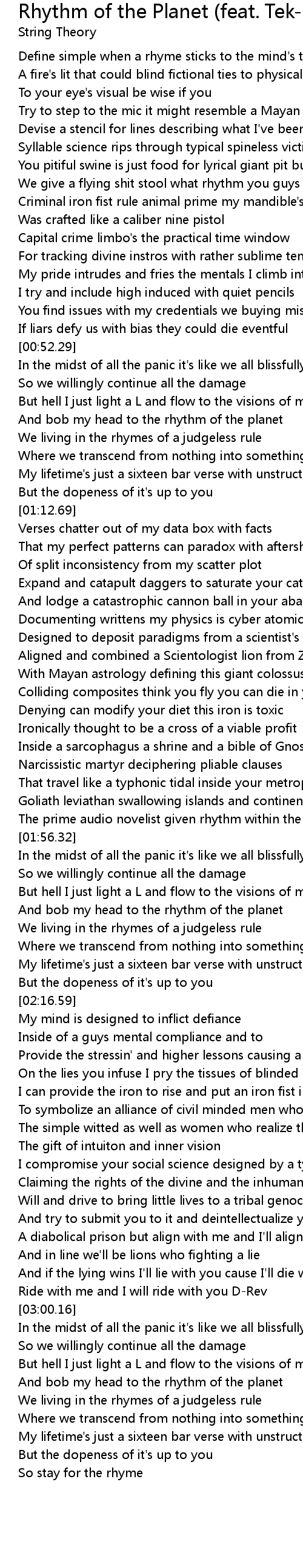 Rhythm of the Planet (feat. Tek-nition & D-Rev) Lyrics