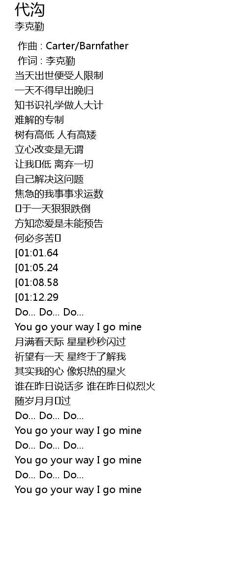 | [02:17.41][01:12.29] | jin guan ku tong ye zi hao |