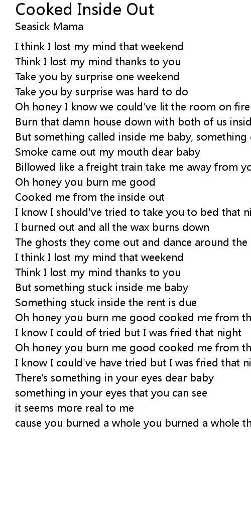 Oh honey you burn me good cooked me from the inside out |