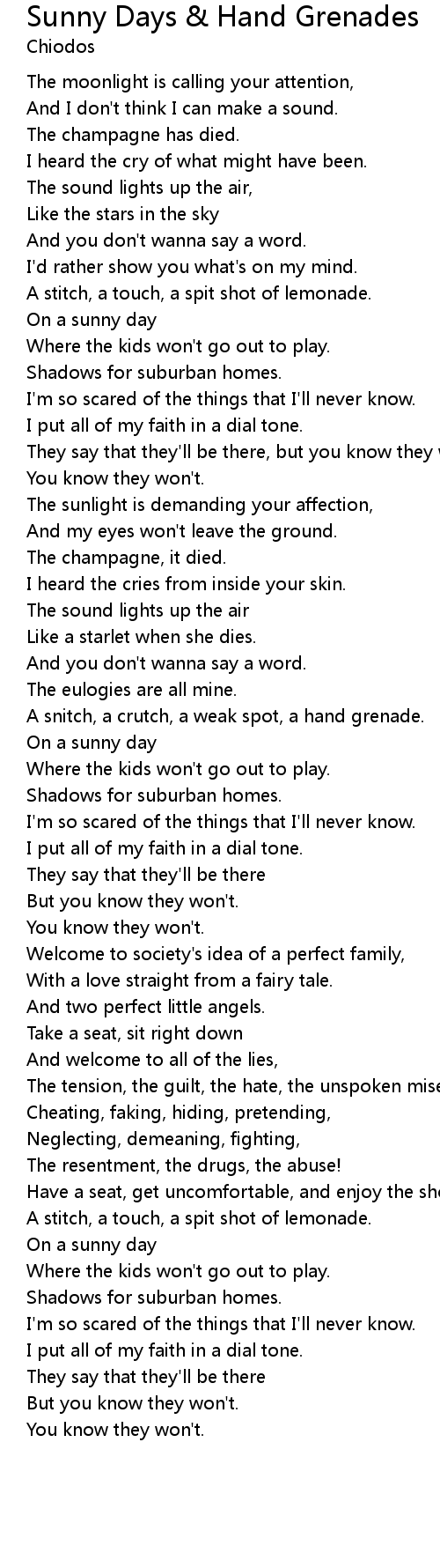 | [01:46.77] | A snitch, a crutch, a weak spot, a hand grenade. |