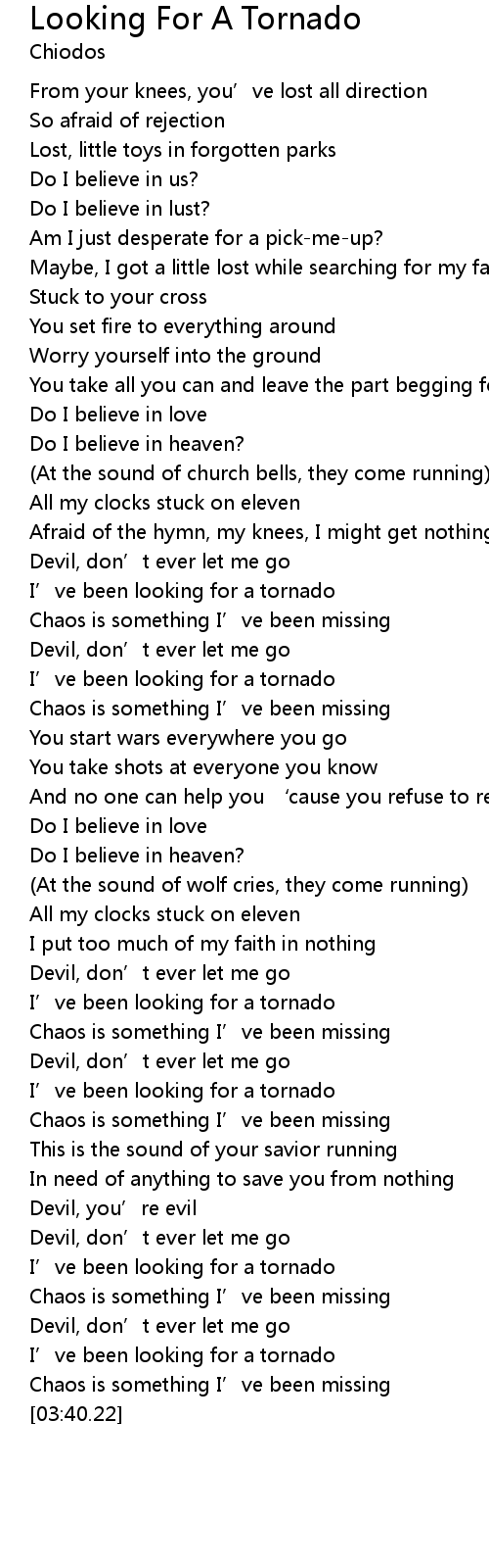| [03:31.88] | I’ve been looking for a tornado |