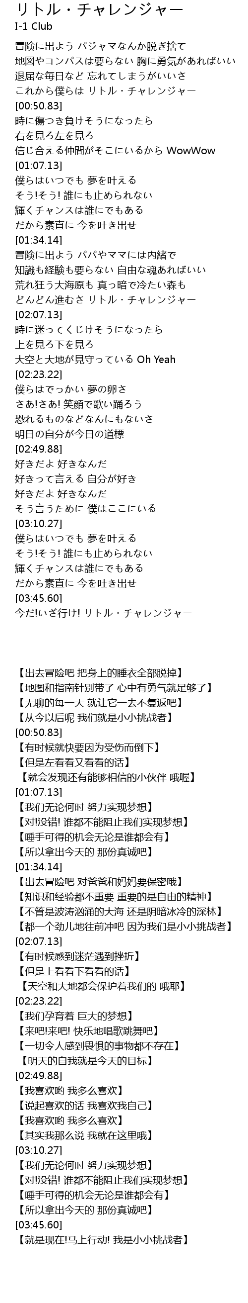 | [00:46.78] | これから僕らは リトル・チャレンジャー |