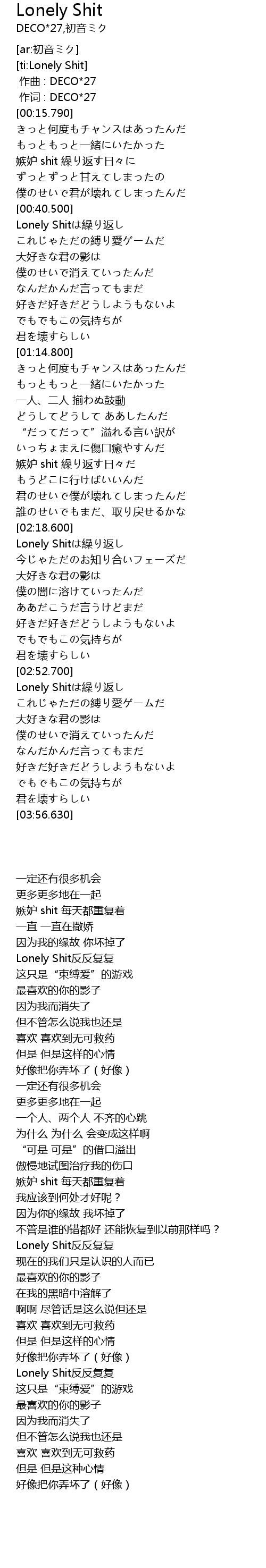 | [03:24.730] | Lonely Shit zǎo fǎn |