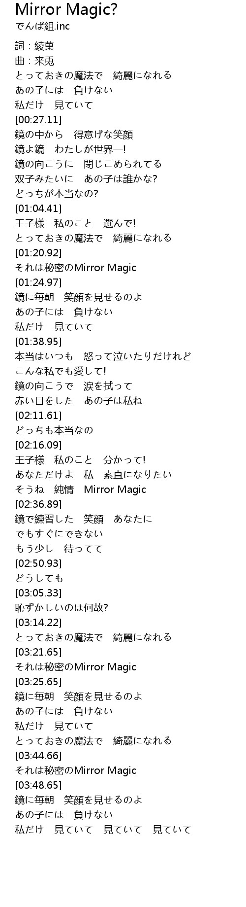 | [03:22.39] | mi mi Mirror Magic |