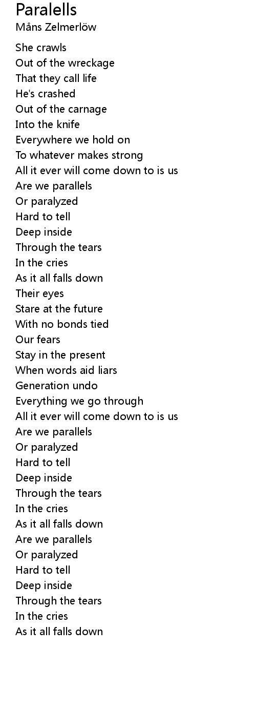 | [02:54.77] | Are we parallels |
