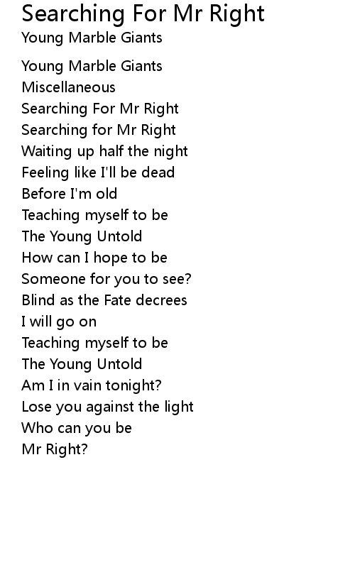 | Searching For Mr Right | |
