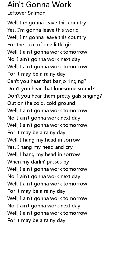 Ain't Gonna Work Lyrics
