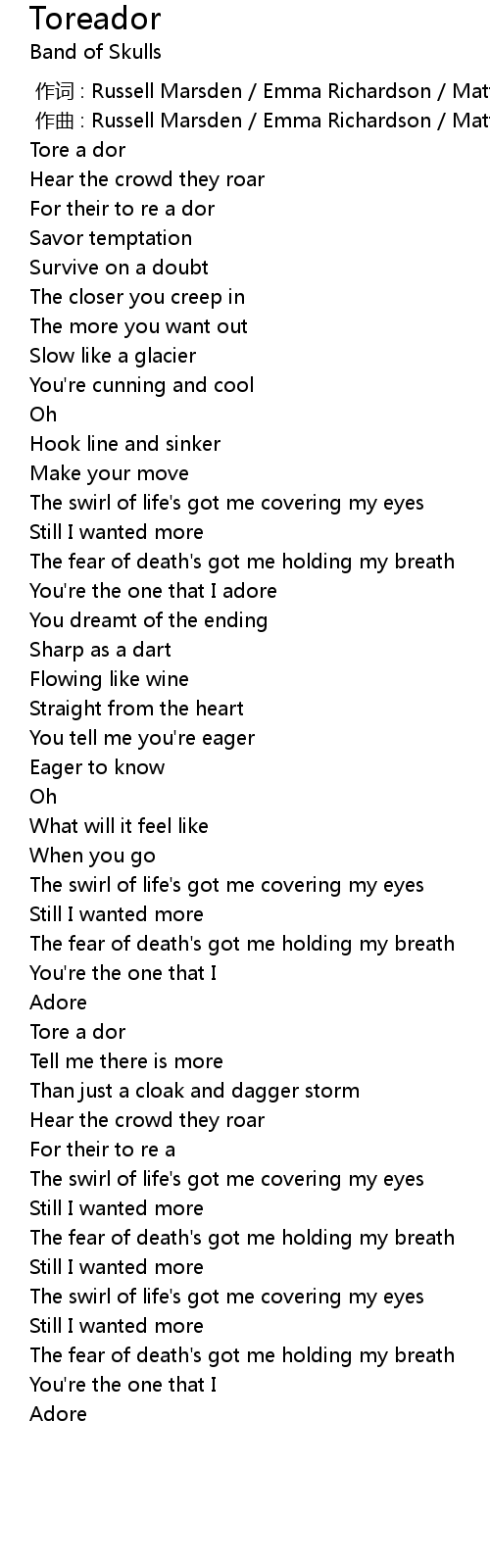 | [00:01.000] | 作曲 : Russell Marsden / Emma Richardson / Matthew Hayward |