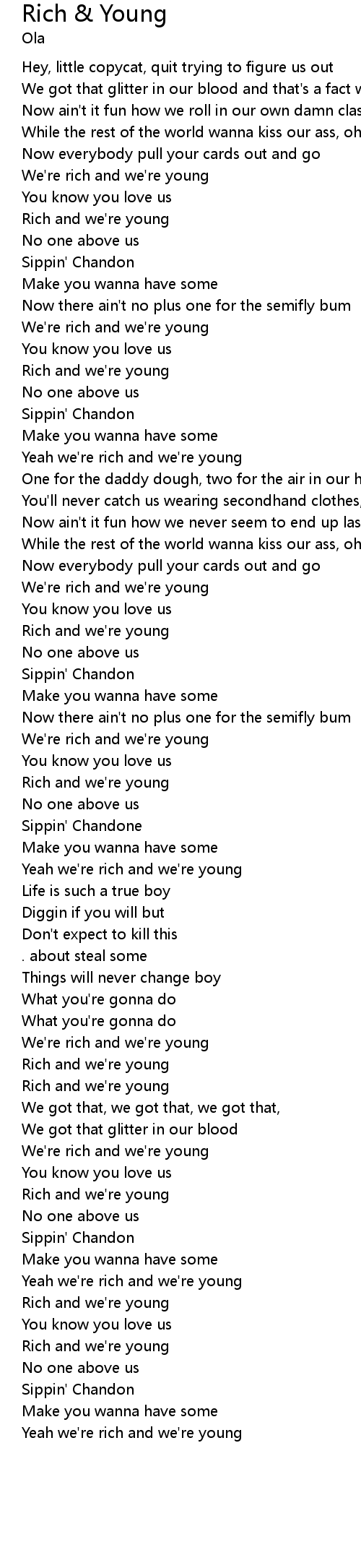 Rich and we're young |