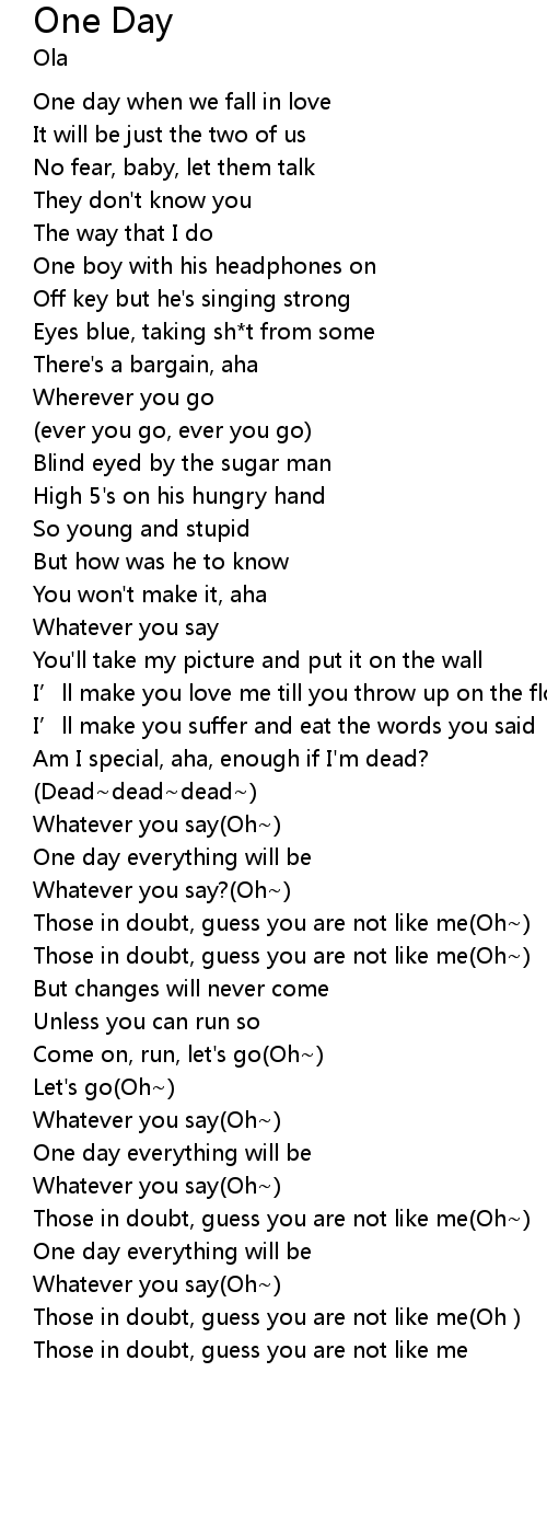 | [01:46.35] | Whatever you say?(Oh~) |
