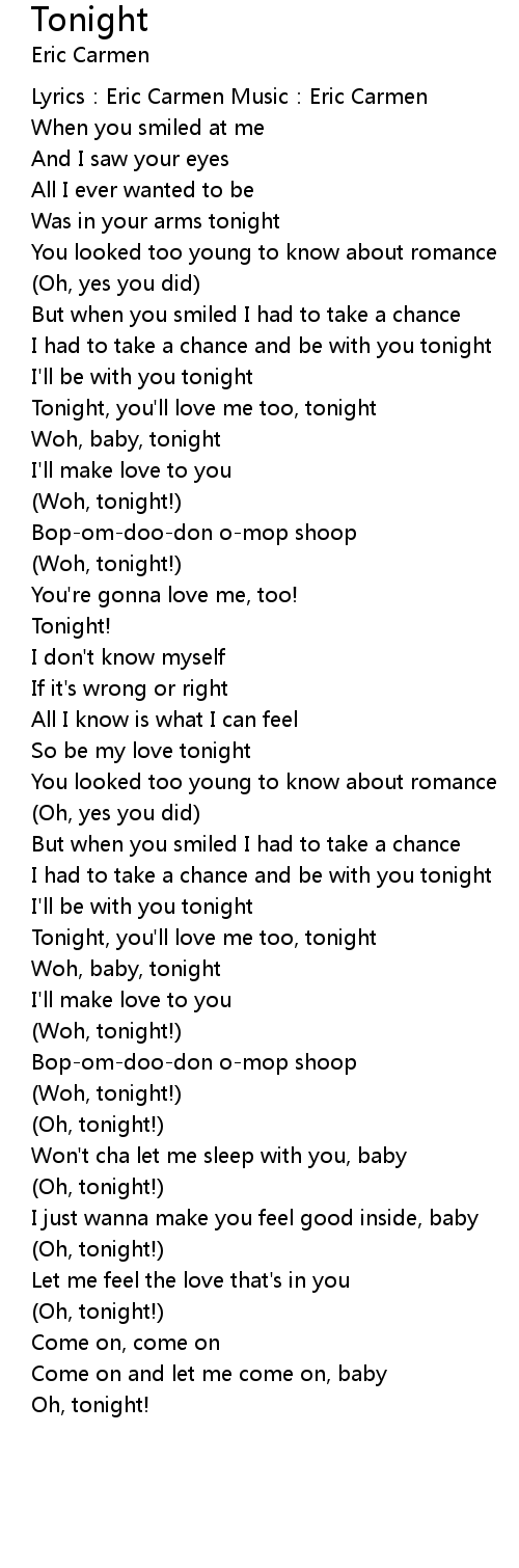 | Lyrics: Eric Carmen Music: Eric Carmen | |