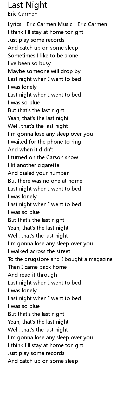 | Lyrics:Eric Carmen Music:Eric Carmen | |