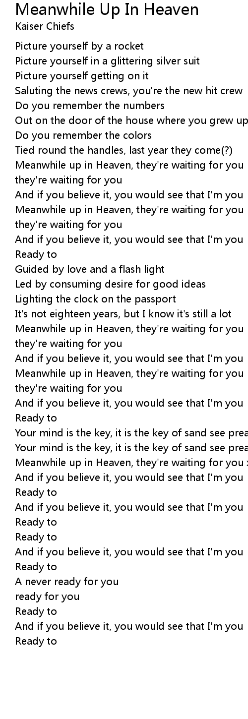 Meanwhile up in Heaven, they're waiting for you x2 |