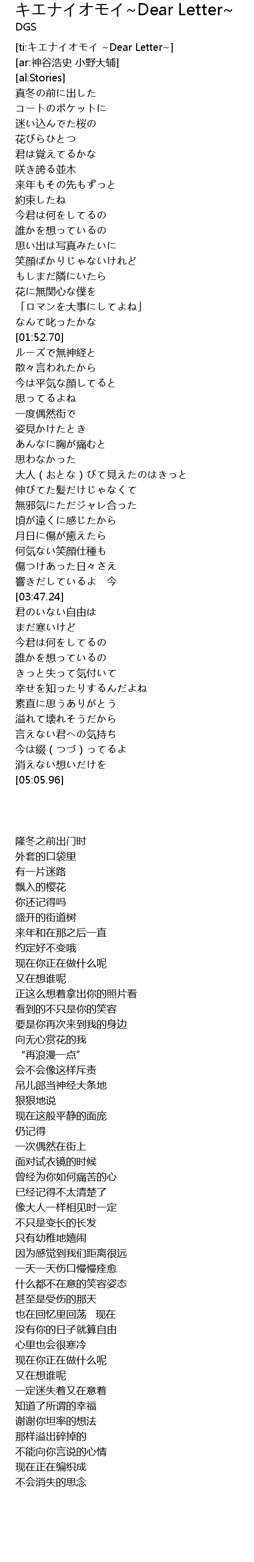 | [ti:キエナイオモイ ~Dear Letter~] | |