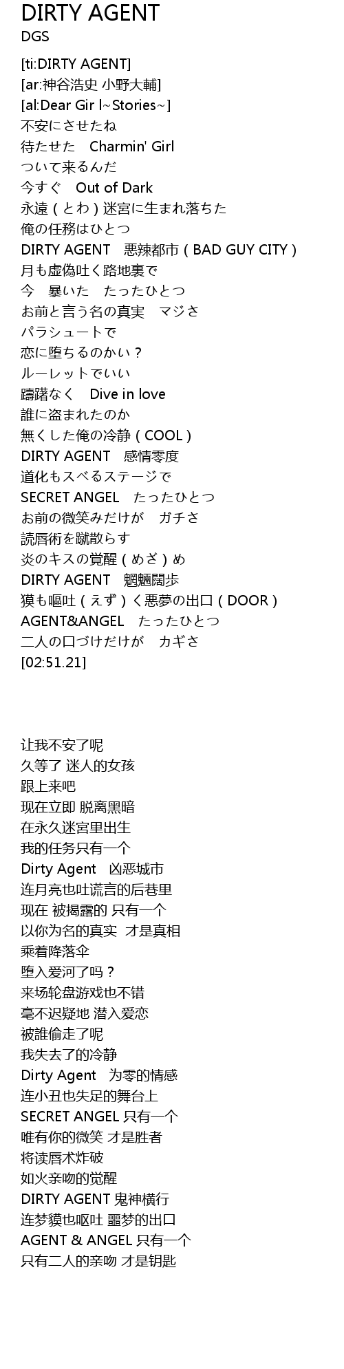 | [00:45.24] | DIRTY AGENT e la du shi BAD GUY CITY |