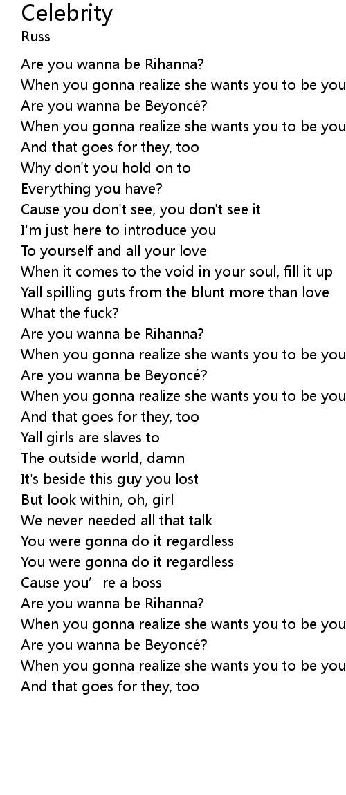 | [00:22.485] | Are you wanna be Beyoncé? |