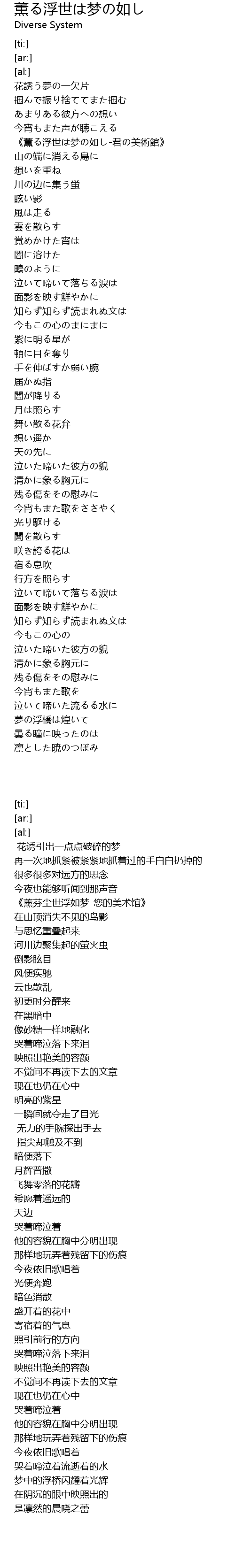 | [00:33.62] | 《薫る浮世は梦の如し-君の美術館》 |