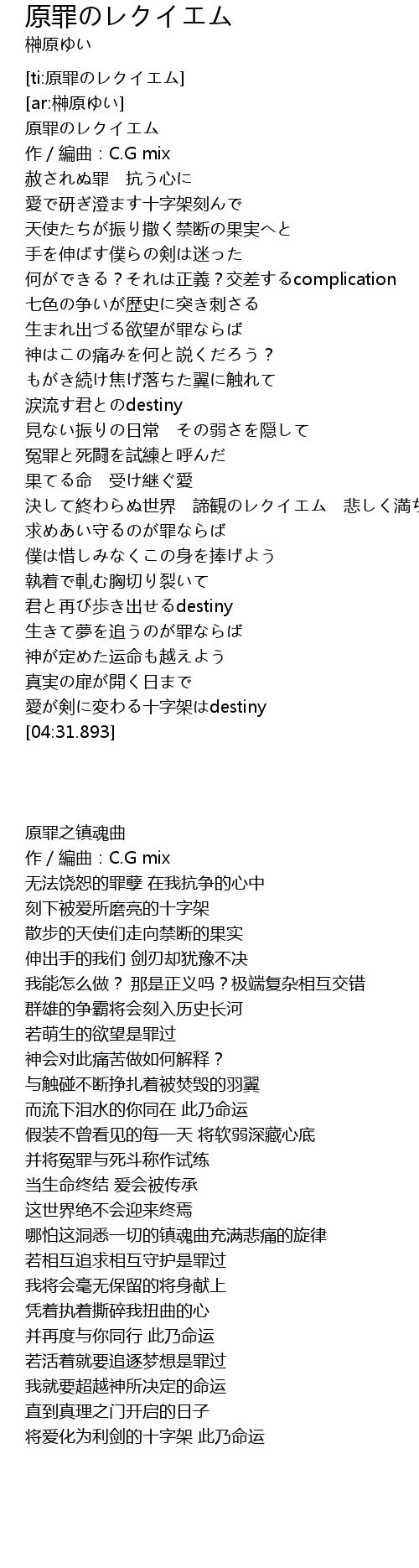 | [04:19.780] | 愛が剣に変わる十字架はdestiny |