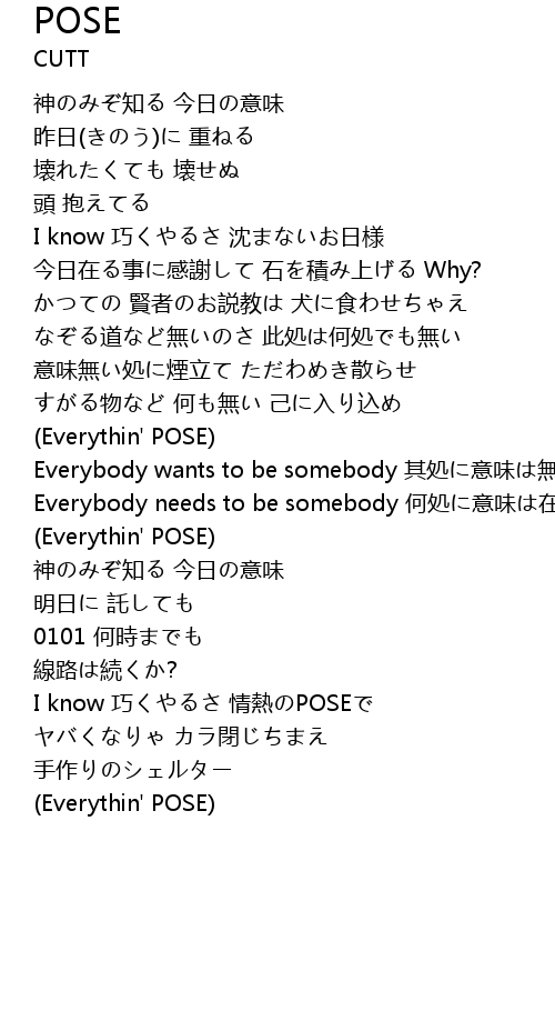 | Everybody needs to be somebody 何処に意味は在る? | |