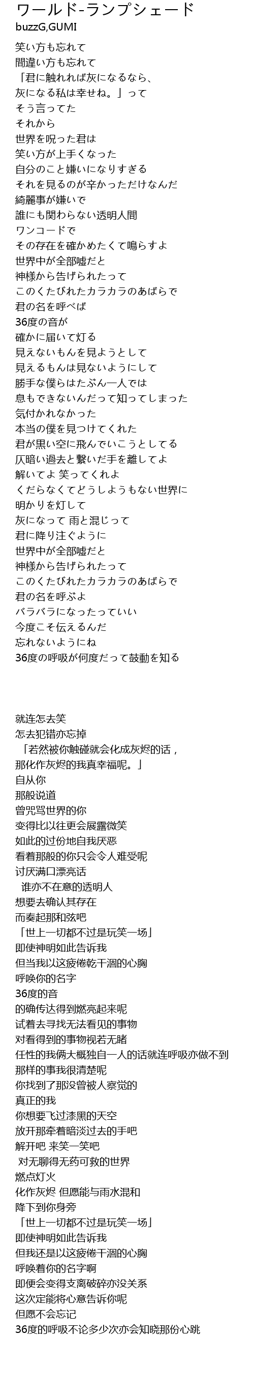 ワールド-ランプシェード  Lyrics