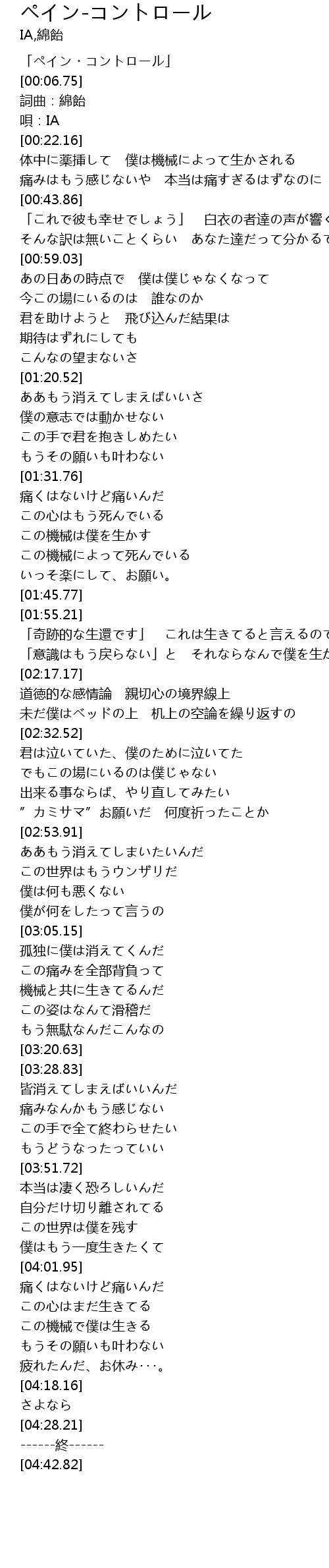 | [00:01.28] | 「ペイン・コントロール」 |