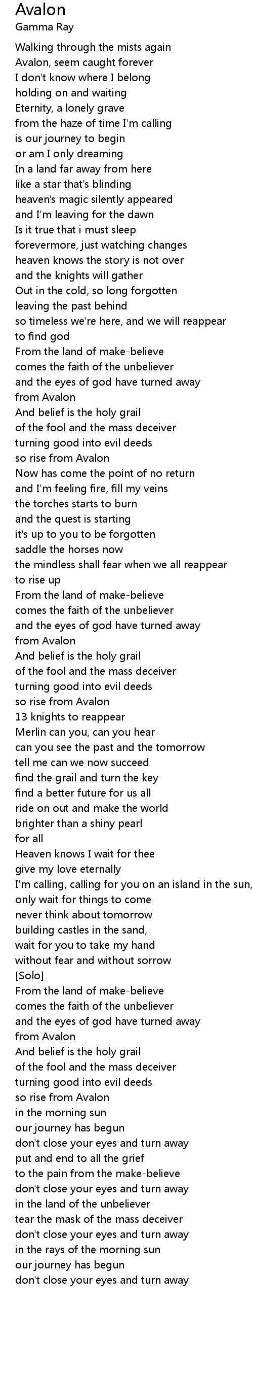 so rise from Avalon |