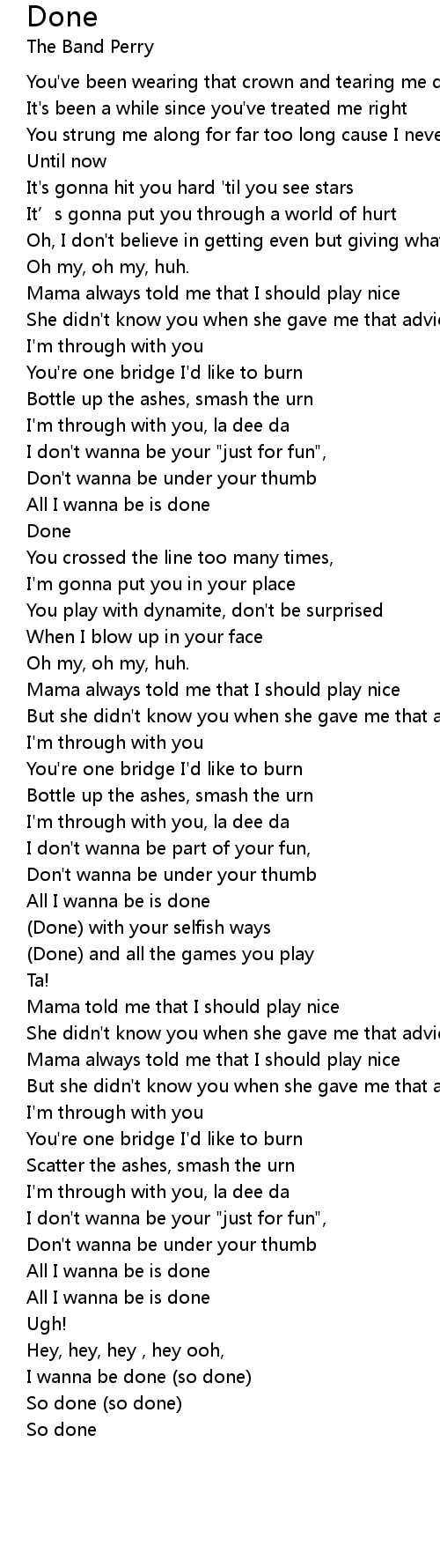 | [03:10.20] | I wanna be done (so done) |