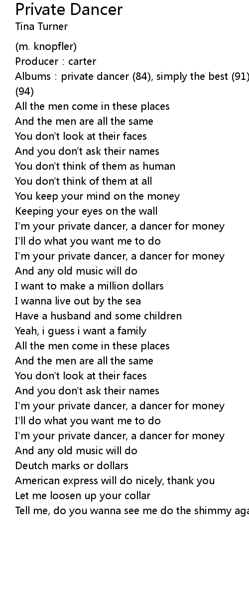 | I' m your private dancer, a dancer for money | |