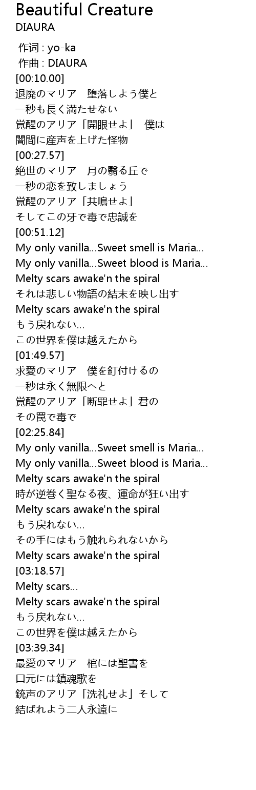 | [02:39.09] | My only vanilla…Sweet blood is Maria… |