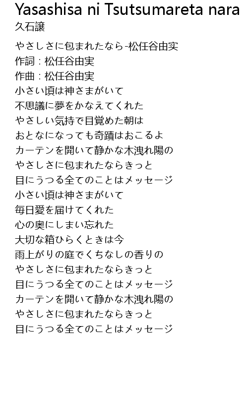 | [00:00.371] | やさしさに包まれたなら-松任谷由实 |