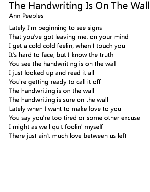 | Song | The Handwriting Is On The Wall |