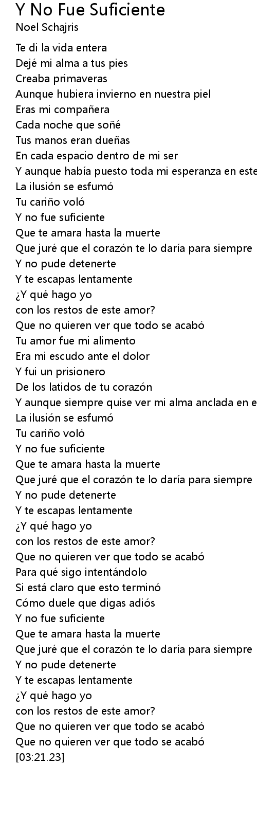 | [03:02.13] | Que no quieren ver que todo se acabó |