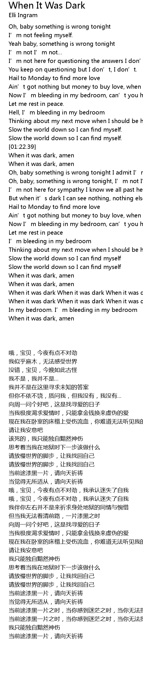 | [02:45.98] | When it was dark When it was dark When it was dark |