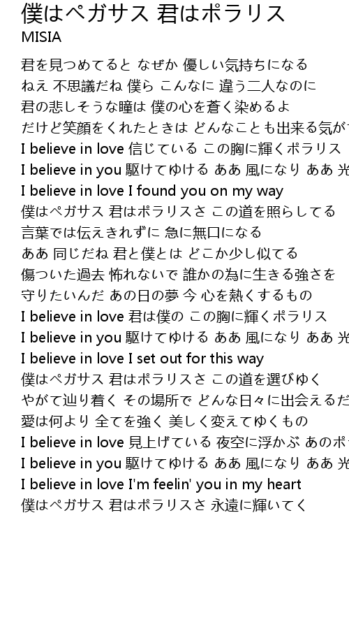 | I believe in love 見上げている 夜空に浮かぶ あのポラリス | |