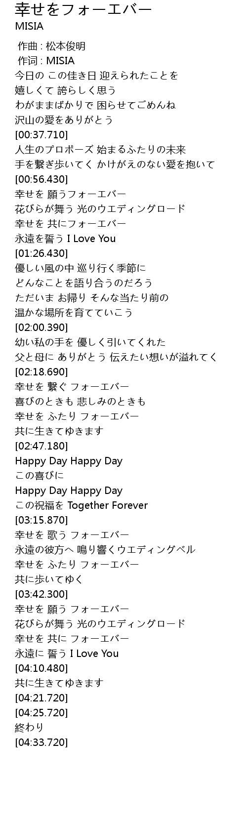 | [03:29.860] | 幸せを ふたり フォーエバー |