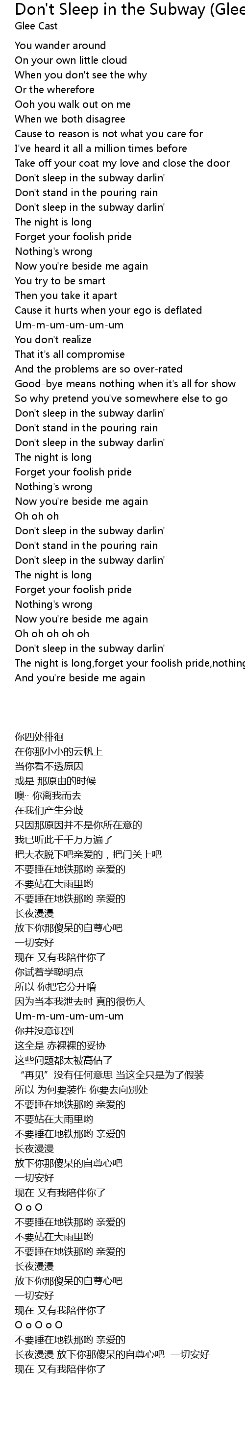 Don't Sleep in the Subway (Glee Cast Version) [feat. Adam Lambert] Lyrics