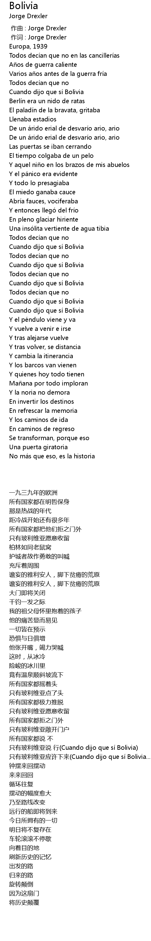 | Song | Bolivia |