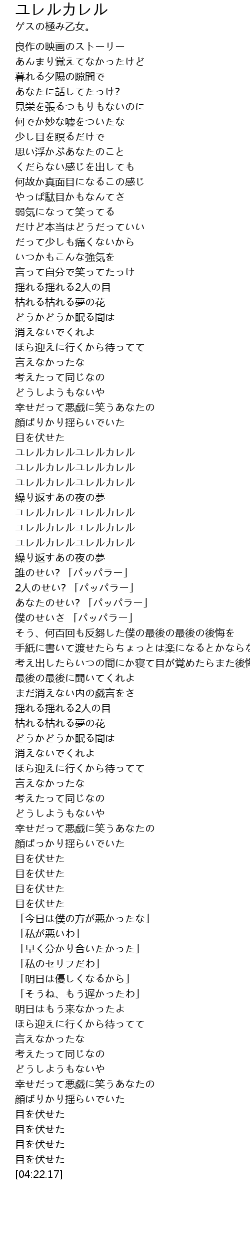 | [01:48.85] | ユレルカレルユレルカレル |