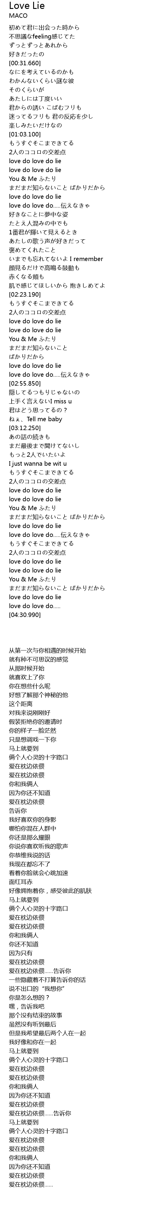 | [03:51.930] | love do love do lie |