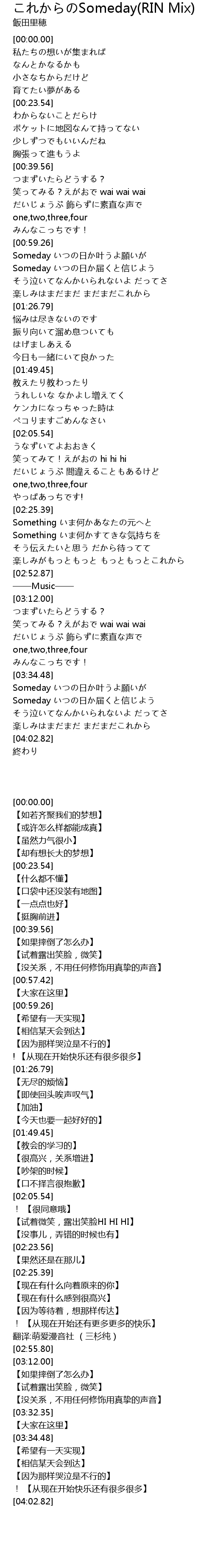 | [03:36.43] | Someday rì yè yuàn |