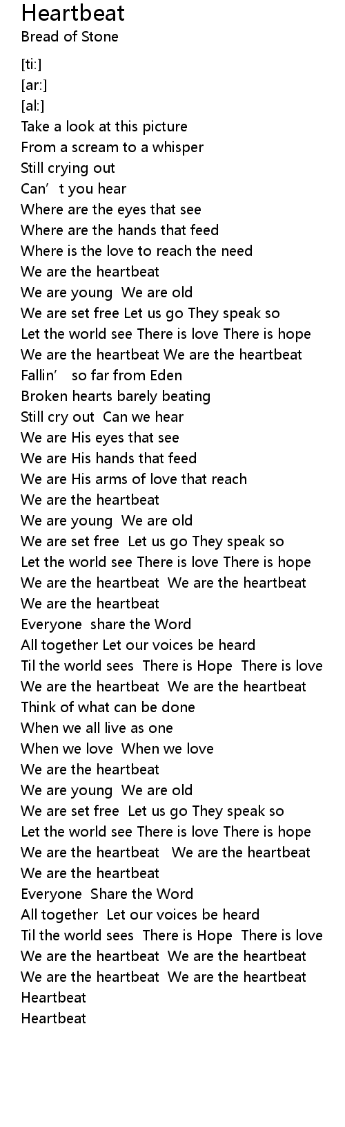 | [03:42.86] | We are the heartbeat We are the heartbeat |