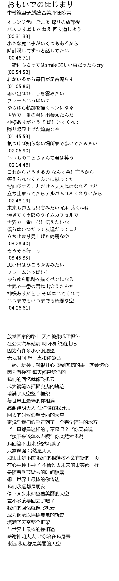 | [04:18.50] | いつまでもいつまでも綺麗な空 |